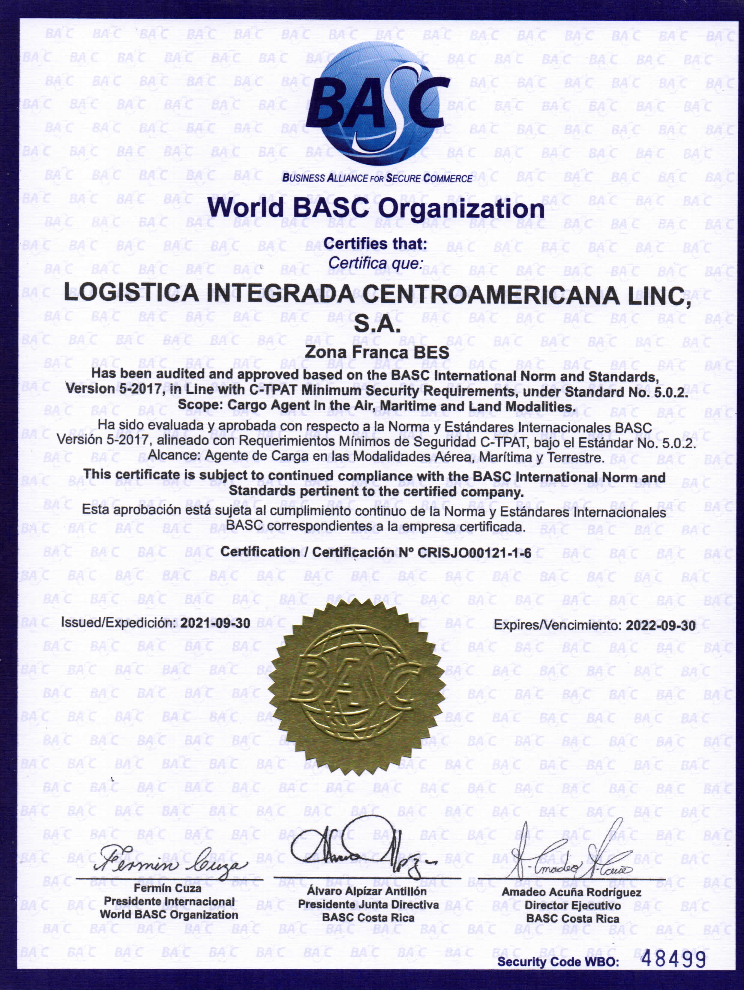 “Estamos comprometidos con la mejora continua en el desempeño de nuestro sistema de gestión integrado y el cumplimiento de los requisitos aplicables, por medio de soluciones logísticas y tecnológicas, procesos de seguridad, control, trazabilidad y el cumplimiento de nuestras normas éticas y valores; con el propósito de satisfacer los requerimientos de nuestros clientes, prevenir y mitigar cualquier tipo de actividad ilícita que pueda comprometer la integridad y continuidad de la cadena logística.”