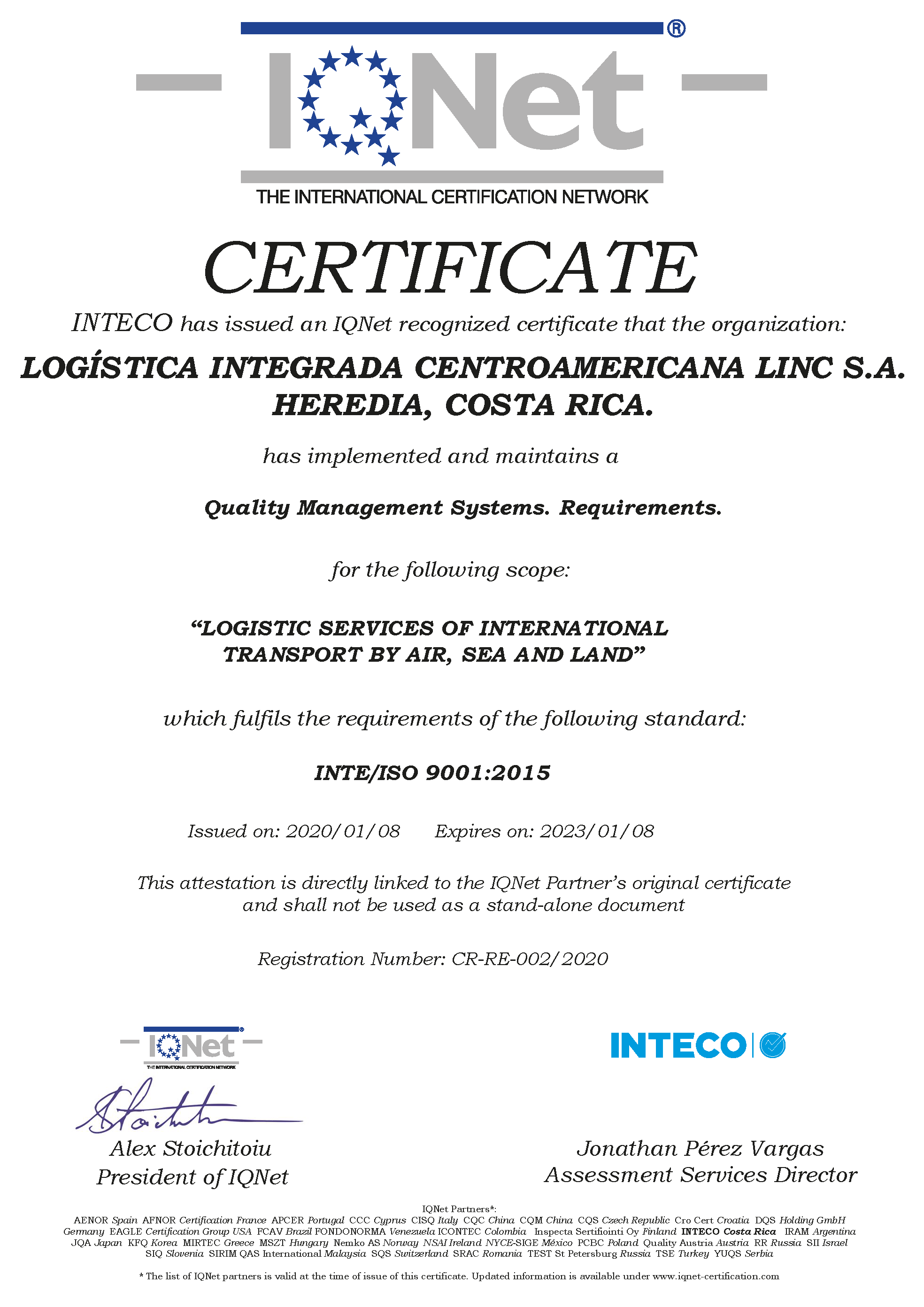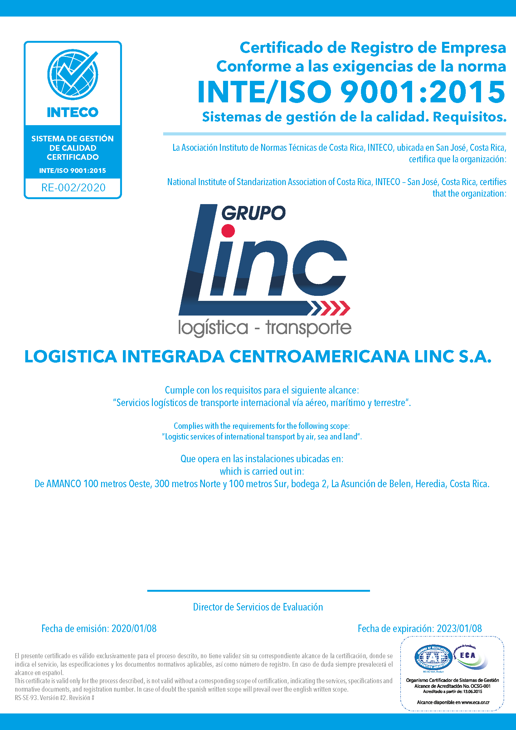 Grupo Linc está comprometido con la mejora continua en el desempeño de nuestro Sistema de Gestión, con el propósito de satisfacer los requerimientos de nuestros clientes que buscan un servicio de transporte local e internacional. Queremos ser un aliado oportuno, confiable y seguro durante el tiempo en que la mercancía esté bajo nuestra responsabilidad.